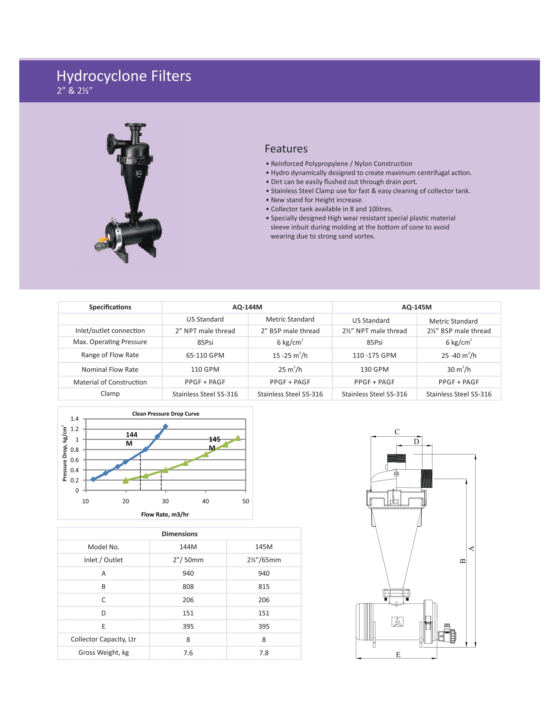 | Inlet/outlet | 2"NPT | 2"BSP | 21/2NPT | 21/2BSP |